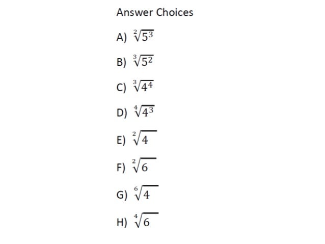 Fraction Exponent Into Radicals ANSWER CHOICES