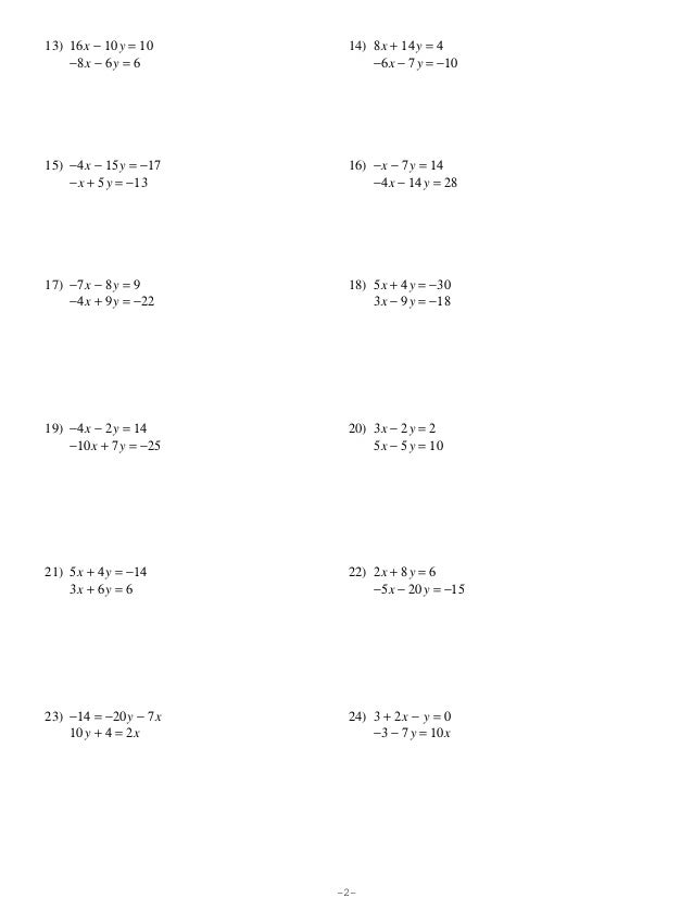worksheet solving systems equations elimination algebra linear answers excel worksheets db addition